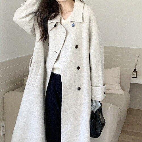 정상가:249,000원 ㅣ 에브리데이]더블 버튼 카라넥 오버핏 롱 울 블렌드 코트 (EB4JH007D)