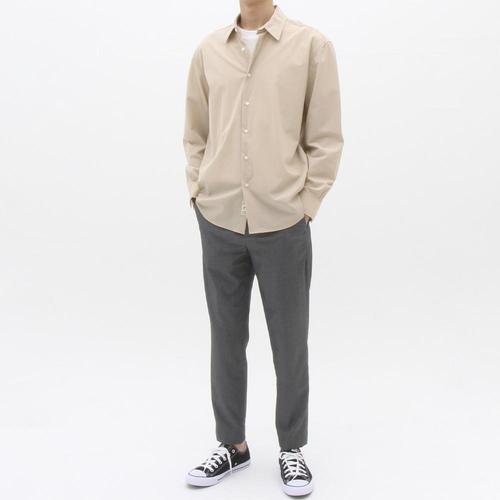 [더셔츠스튜디오]베이지 루즈핏 나일론 스판 솔리드 셔츠 (TSS316)