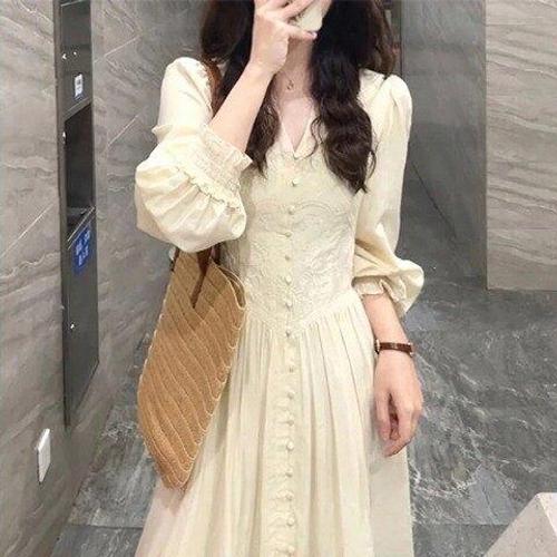 [아리엘스타일]브이넥 퍼프소매 플레어 실루엣 알비온롱원피스