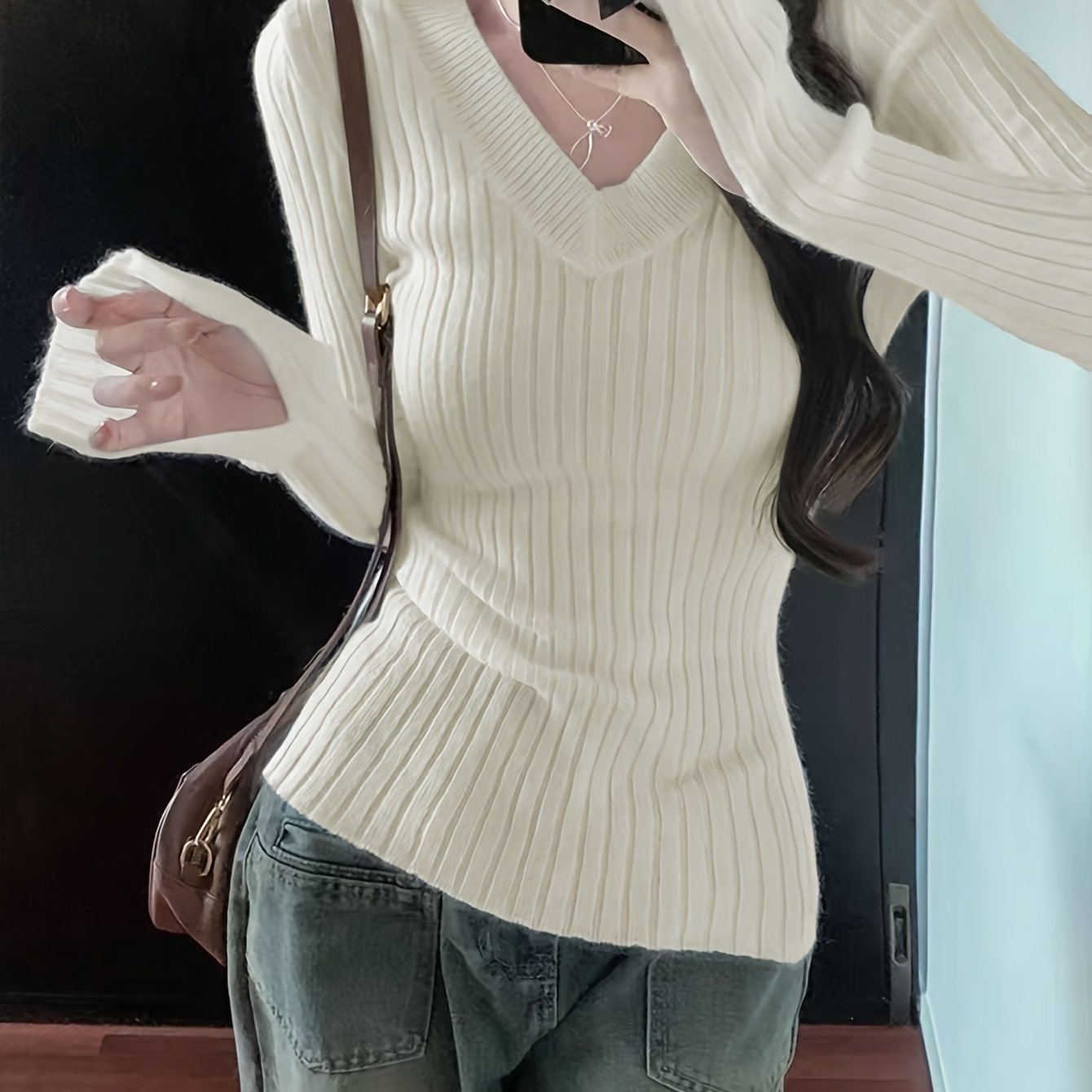 TEMU 우아한 디자인 + 신상 봄/여름 V넥 스웨터 솔리드 컬러 긴팔 풀오버 따뜻하고 편안한 긴팔 헨리넥 패션|패션
