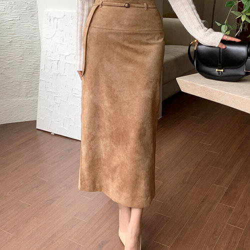 더제이수 / 캐리 스웨이드 벨트 스커트