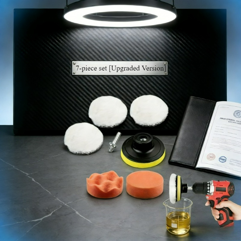 TEMU 7pcs 전문가용 차량 광택 세트 | 스펀지 고무 광택 패드 및 드릴 커넥터, 향상된 페인트 관리 및 광택을 위한 범용 모델, 왁싱 및 광택용