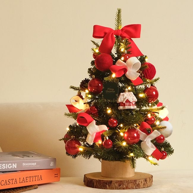 ROOICE 크리스마스 장식 6단 벽트리 풀세트 + LED 앵두전구, 레드