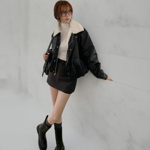 [다잇템]여성 세미오버 인조가죽 덤블카라 자켓
