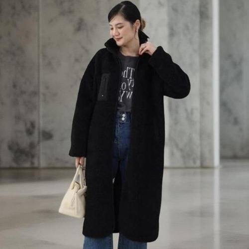 [다잇템][다잇템] 여성 덤블 주머니 포인트 폴라넥 플리스 롱 자켓_23993792_588872