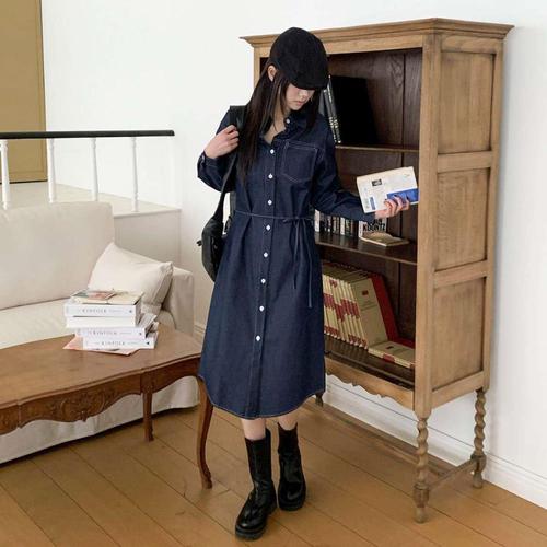 [엄지척]가을 청 여성 허리조절 데님 루즈핏 원피스 봄 롱_19957531_667501