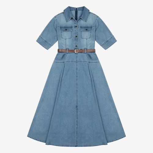 [베스띠벨리]25S/S 벨티드 버튼업 데님 롱 원피스 BKOKE2582