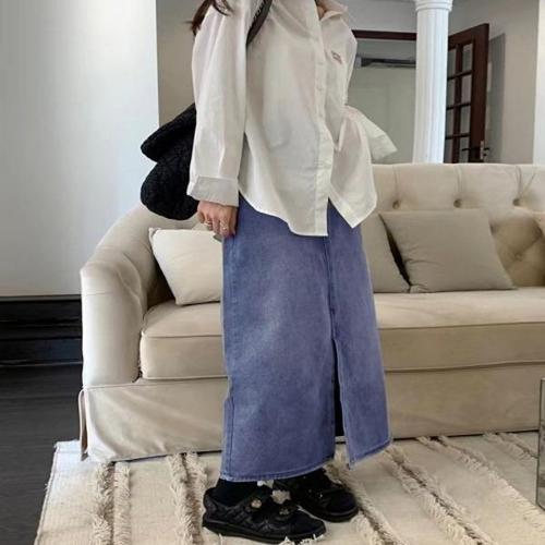 BLACK K7 여성 빈티지 캐주얼 앞트임 데님 롱스커트 빅사이즈 패션 청 롱스커트