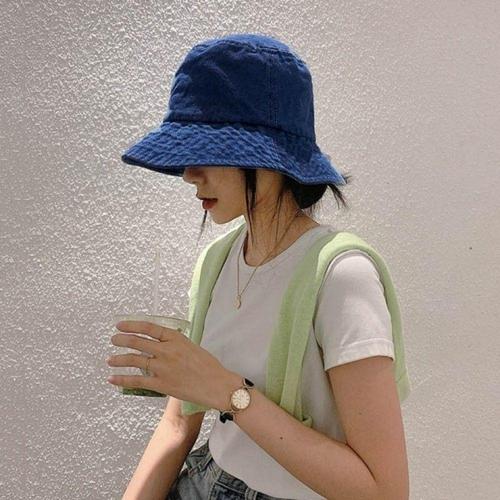 워싱 데님 청 버킷햇 벙거지 외출용 여행모자 WFJUYAU