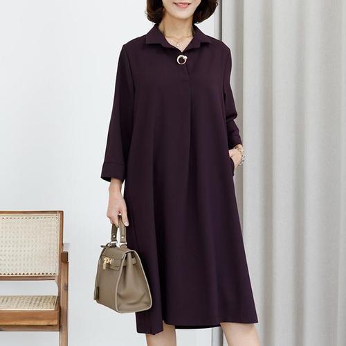 클래식 빅단추 중년여성 기모 원피스 정장 하객룩 빅사이즈 겨울 미시마담 40 50대 엄마옷