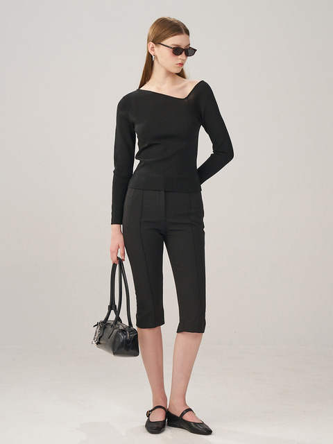 [아르] 슬랜트 넥 니트 탑 _ 블랙
