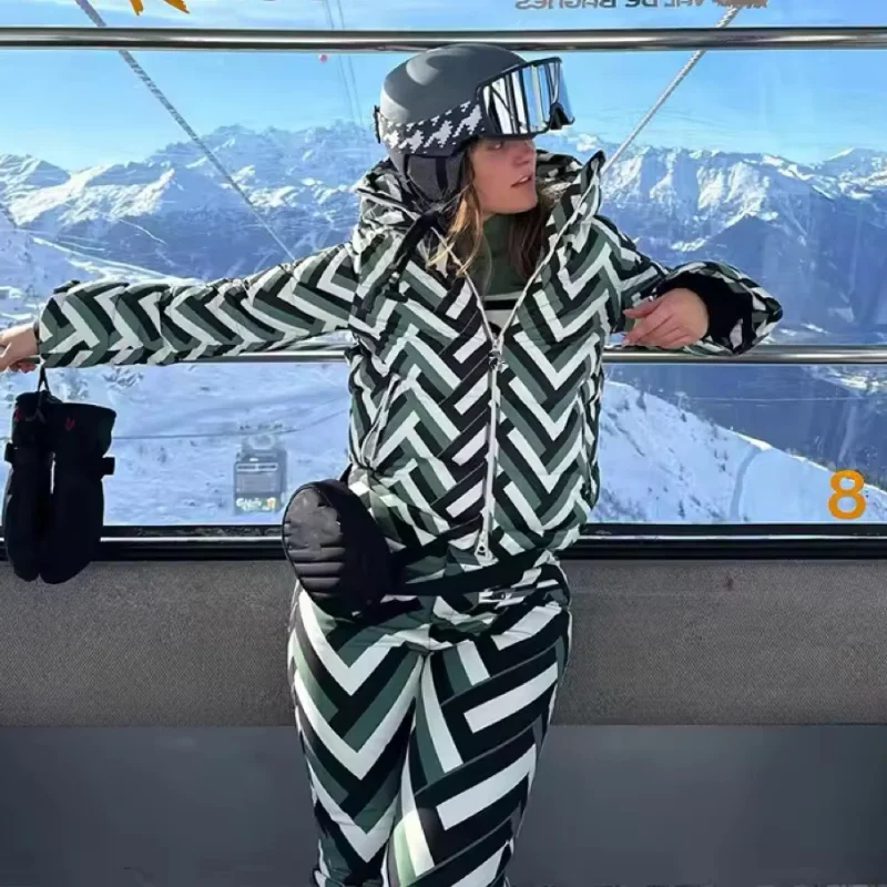 스트라이프 스키복 여성용 방수 스탠드 칼라 후드 스노우 다운 코트 스포츠 파카 지퍼 점프수트 2026 신상 두꺼운 여성 스키웨어