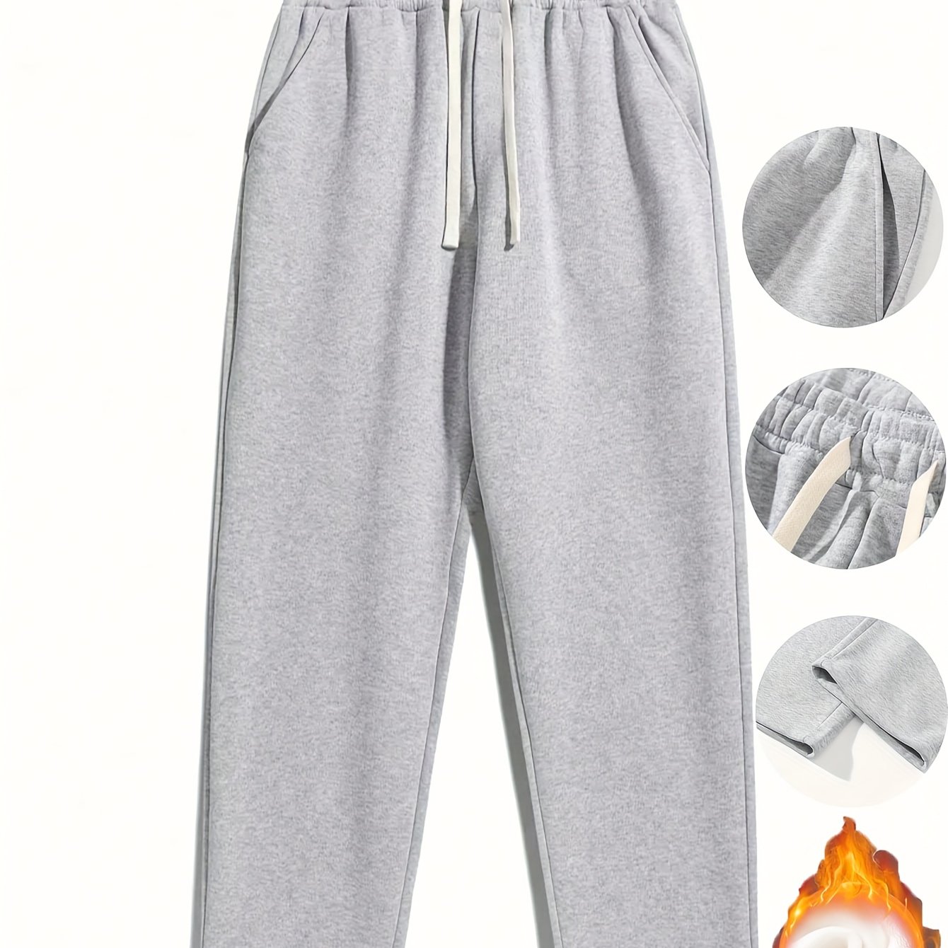 TEMU 남성용 플리스 안감 조거 팬츠 - 부드럽고 따뜻한 겨울용 스웨트팬츠, 드로스트링 허리, 미드 라이즈 루즈핏 바지 (헬스, 러닝, 캐주얼 웨어용) - 남성용 포근한 겨울 바지, 조깅 팬츠, 헬스복, 스포티 디자인, 튼튼한 구조|남자바지
