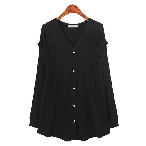 [허밍퍼플]여성용 2314 바바 이중 프릴 BL 빅사이즈 블라우스 단추 긴팔 긴소매 봄 가을 세련미 여성의류
