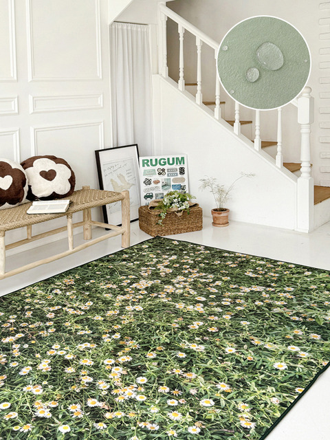 TEMU 플러시 그린 모스 & 화이트 데이지 에어리어 매트 - 부드럽고 미끄럼 방지, 불규칙한 모양, 세탁기 사용 가능 - 거실, 침실, 발코니 장식에 이상적, 거실용 러그|발매트