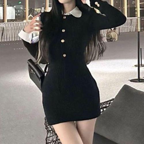 [에이치플러스몰]이너카라 미니원피스 블랙 여성 하객룩 데이트룩