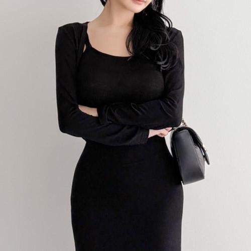여성 나들이 하객룩 슬림 원피스 간절기 긴팔 데일리룩 골지 가을 데일리 롱원피스