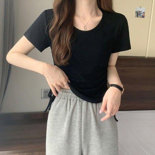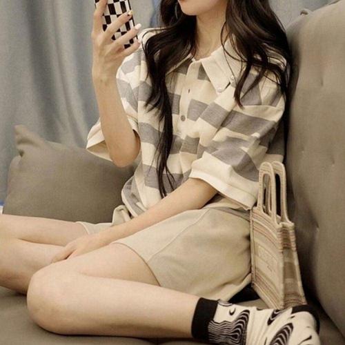 여성용 스트라이프 데일리 반팔 셔츠 여름 캐주얼 티셔츠 WFL9C83