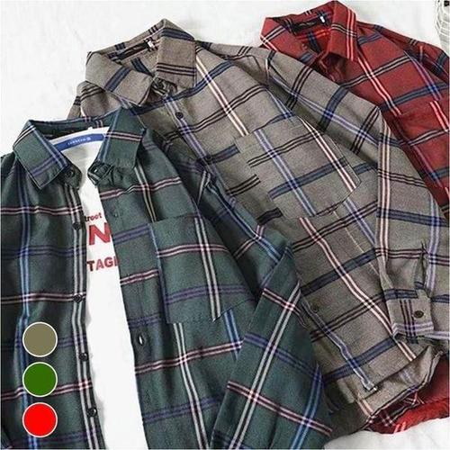 [나크21] (55~88) 데일리 오버핏 체크 롱 셔츠 NK33-T-14