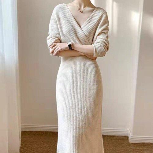[핑크엘리제]브이넥 니트롱원피스 데일리룩 보렌카롱원피스