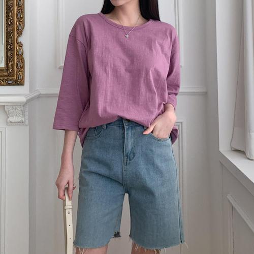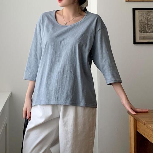 [더바디시크릿]슬라브 8부 여성 티셔츠 데일리 미니멀룩
