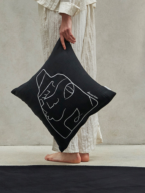[데코뷰] 라인 드로잉 자수 쿠션커버