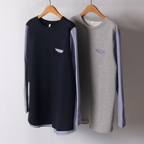 나야홍 / 빅사이즈티 F543L601 이중ST배색긴팔티셔츠 MN