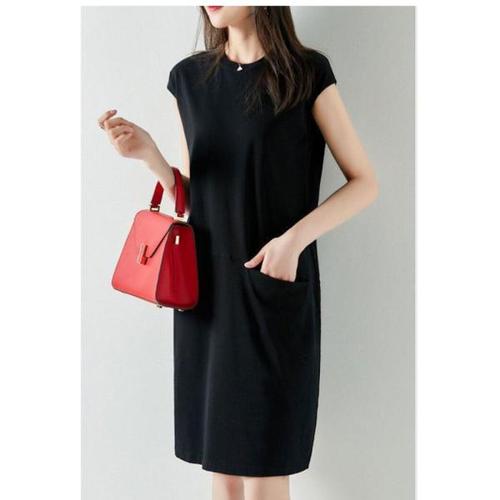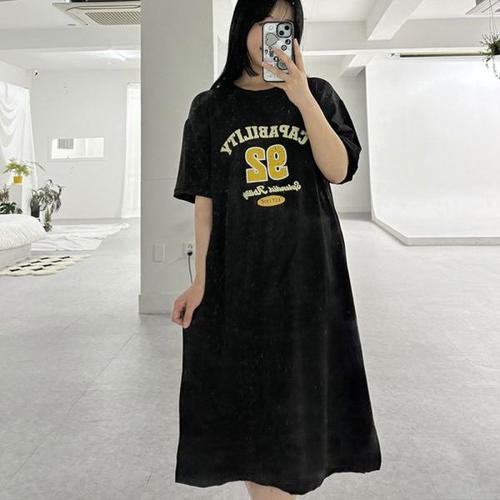 [오너클랜]인기상품 폴리 원단 여자 오버핏 반팔 라운드넥 캐주얼 원피스 [WF0B7BC_250919]