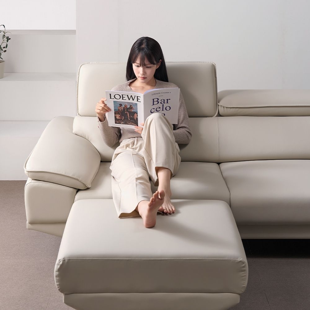 테오 헤드틸팅 스플릿 가죽 4인용 소파 3colors(스툴선택)