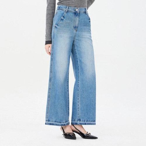 [잠뱅이]여성)오비안밴드 도밍고 솔트틴캣워싱 기모 와이드핏 데님팬츠/AO4DTG758-1_US