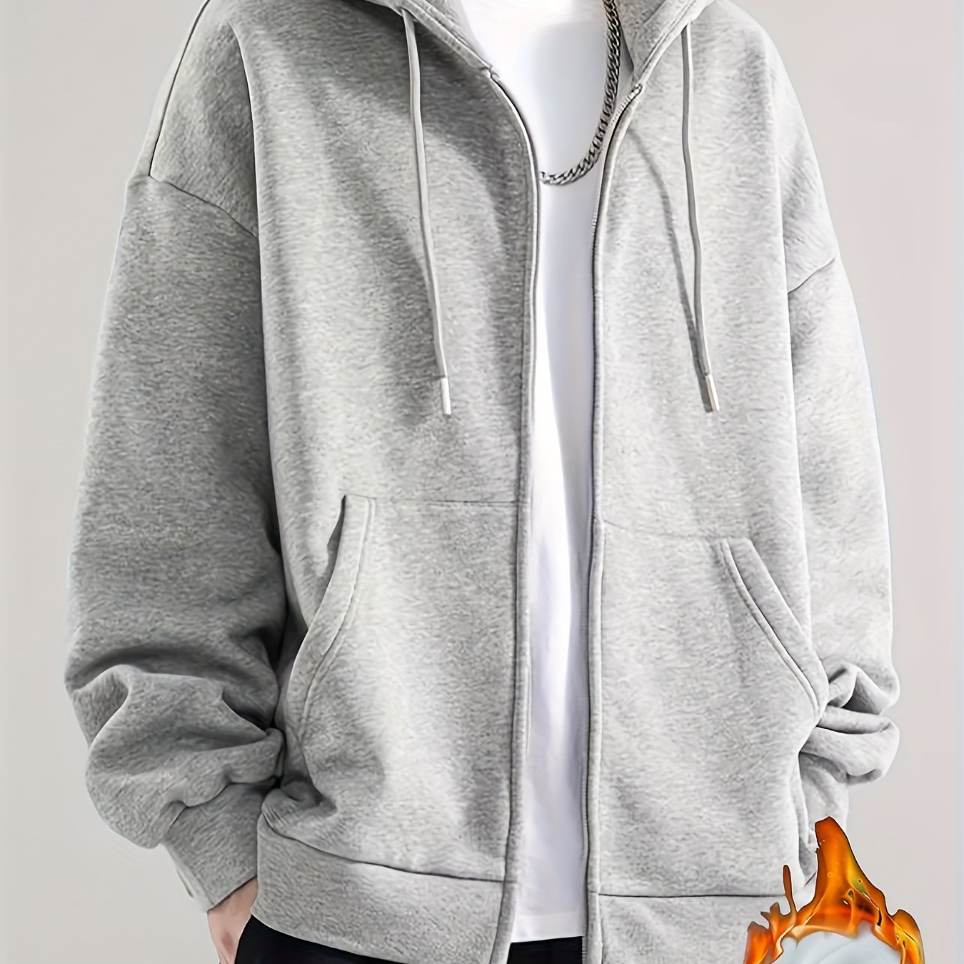 TEMU 남성용 풀 지퍼 재킷 - 겨울용 따뜻한 코트, 풀 지퍼 프론트, 루즈핏 캐주얼 아우터웨어, 추운 날씨용 블랙 후드 스웨터, 기계 세탁 가능한 긴팔 재킷 (드라이클리닝 금지) - 도시 출퇴근 및 야외 활동용