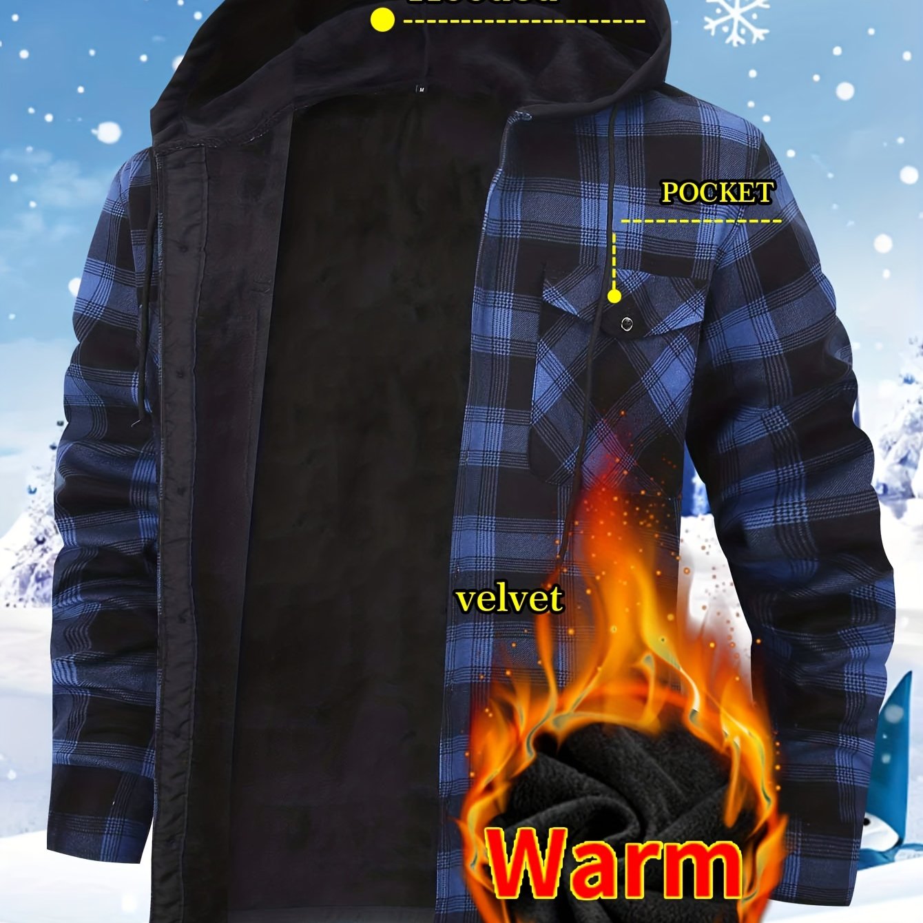 TEMU 남성용 두꺼운 플란넬 겨울 재킷, 플리스 안감 - 헤비 듀티 체크무늬 후드 코트, 긴소매 버튼 앞면 클로저, 가슴 포켓 - 따뜻한 겨울철 아우터, 비즈니스, 캐주얼 & 야외 활동용 - 간편한 관리 남성 의류, 겨울 재킷
