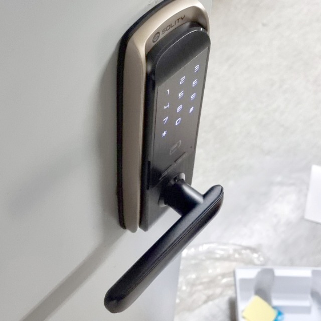 솔리티 SYNC SR-05N 실버 번호전용 키없음 방화문용 보조키 도어락 1way 번호키 버튼식 커버형 가성비굿 안전