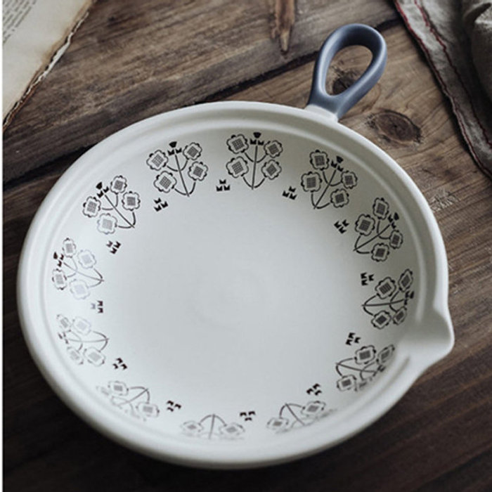예쁜 홈파티 손잡이앞접시 오븐가능 도자기 라면 파스타 샐러드 면기 그릇 T40