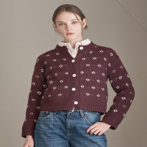 [미니멈에브리데이][미니멈 에브리데이]패턴 도트 자수 버튼업 울 니트 가디건 (EB4CK062D)