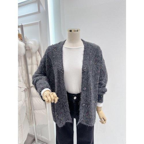 제너럴아이디어 GENERALIDEAstandard 세미 루즈핏 도트 가디건 CHARCOAL WBE3L04511