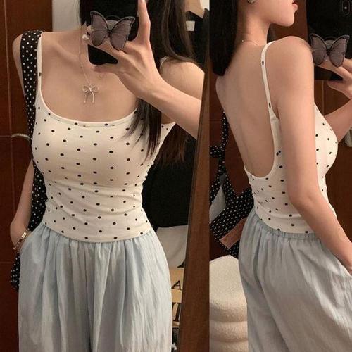 [셀러허브_여성트랜드패션]ONM 백 오픈 여성 3컬러 U라인 도트 나시탑