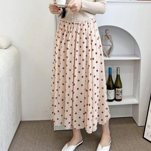 귀여운 컴포트 도트무늬 우먼 허리밴딩가벼운원단 롱스커트