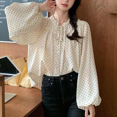 [엄지척]벌룬소매 프릴 도트 체형커버 긴팔 블라우스_19660421_667501