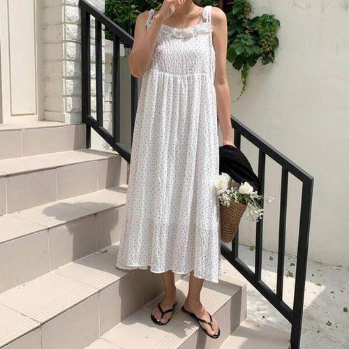 [에이치플러스몰]데님 뷔스티에 여름 트립딱 쉬폰 셔츠 도트 온