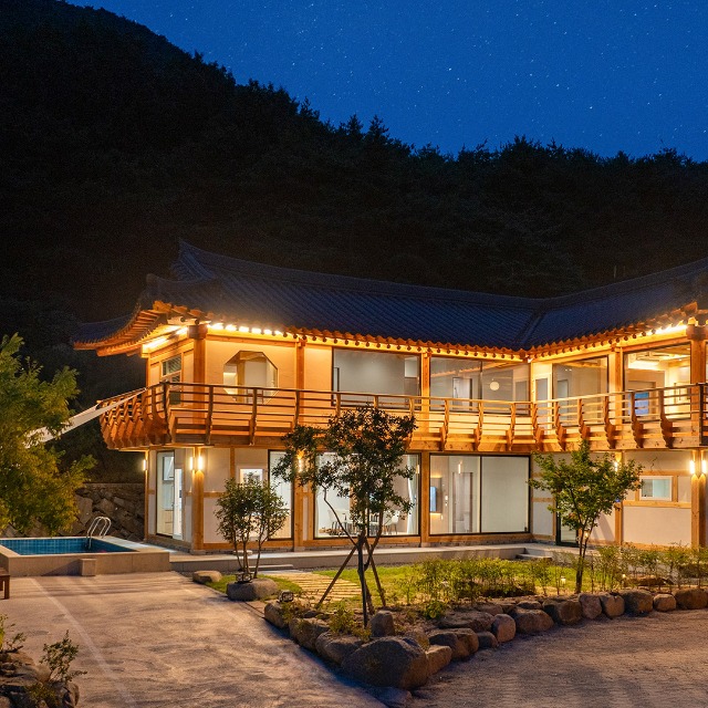 사천 한옥 감성 단체펜션. 온수풀로 가족.모임 여행에 최적화!