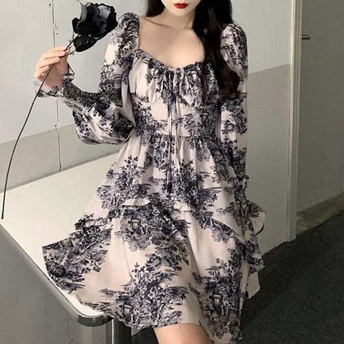[셀럽하우스]독특한 OSTS3620 패턴 프릴 디자인 소매 밴딩 하트넥 원피스