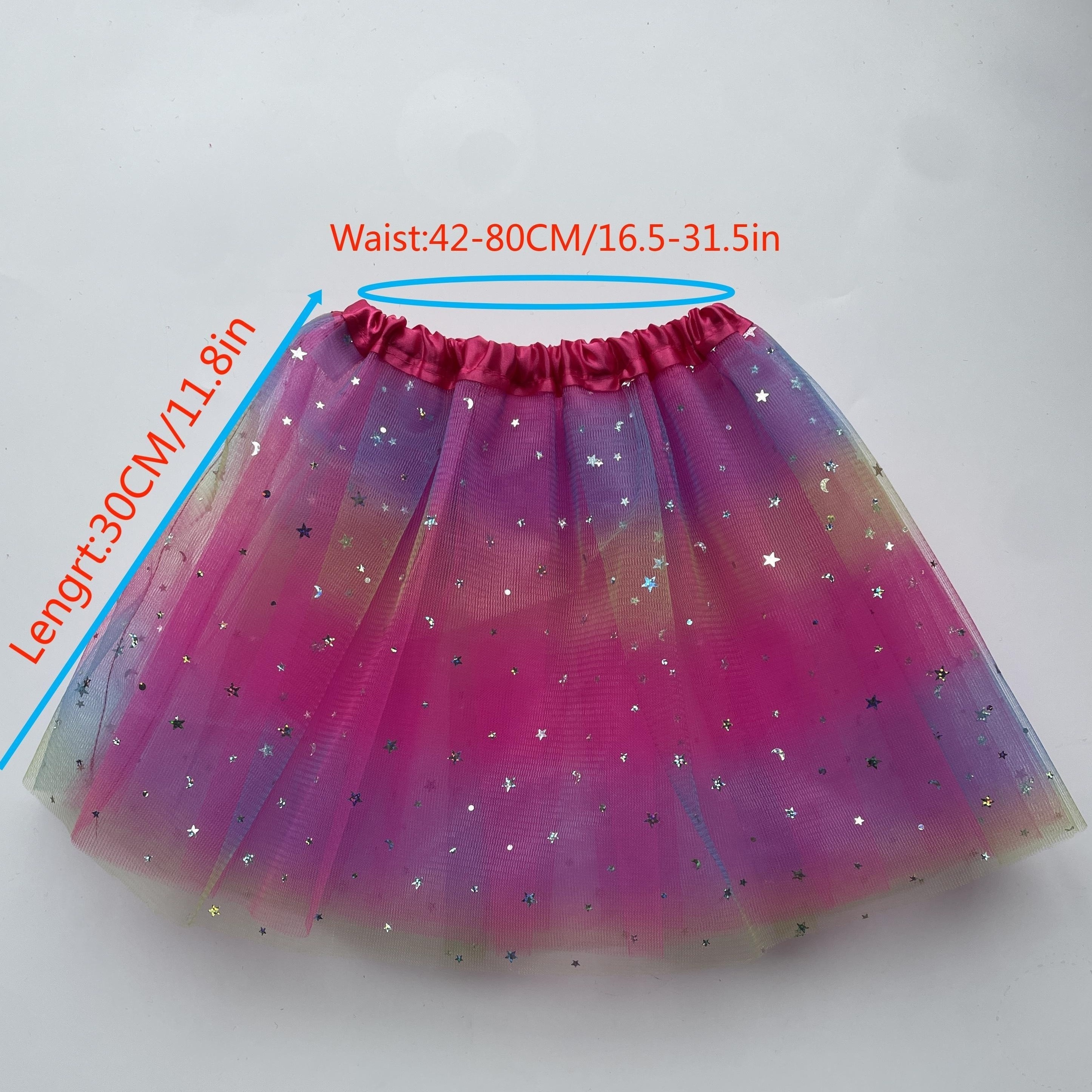 TEMU 이 튜튜 메쉬 스커트는 약 80cm에서 130cm 키의 어린이에게 적합한 축제 행사에 완벽합니다. 생일 파티, 댄스 공연, 축하 행사에 이상적이며, 스팽글과 별과 달 모티브가 있는 귀엽고 화려한 캔디 색상 디자인이 특징입니다.