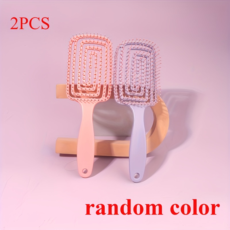 TEMU 2개 대형 엘보/크라니얼 마사지 헤어 빗 - 젖은/마른 머리용 두피 마사지기, 넓은 이빨 빗살 디자인, 파스텔 핑크 & 휴대용 보관 구멍 - 모든 머리 타입, 민감한 두피 케어 및 목욕 후에 이상적