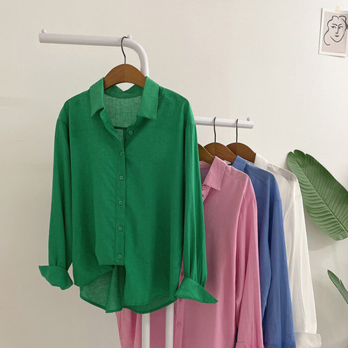 허니제이 / 투케 린넨 단추 여유핏 언발 롱 셔츠(4color)