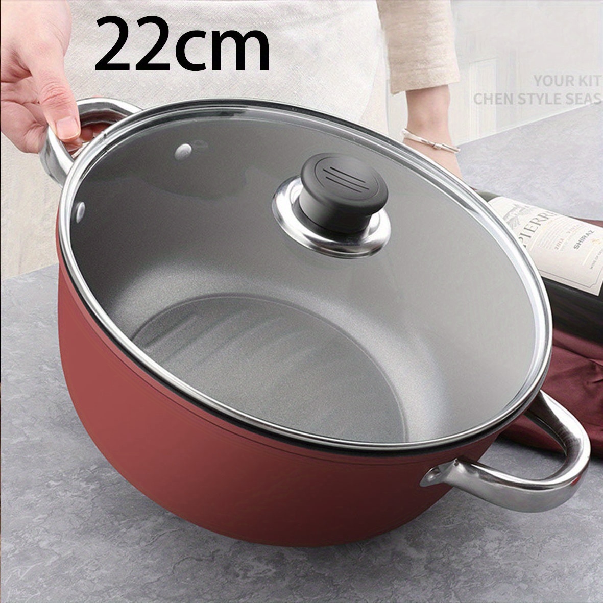 TEMU 뚜껑이 있는 레드 주철 냄비 - 두꺼운 논스틱, 쉬운 브레이징을 위한 듀얼 핸들, 수프, 스튜용, 식기세척기 사용 가능, 가정용 주방에 완벽, 랜덤 스타일의 수프 스푼 1개 포함, 주방 필수품 | 인체공학적 손잡이 디자인 | 내구성 있는 조리기구, 뚜껑이 있는 수프 용기, 스튜 플라스크, 프라이팬, 요리용 팬, 고품질 프라이팬, 논스틱