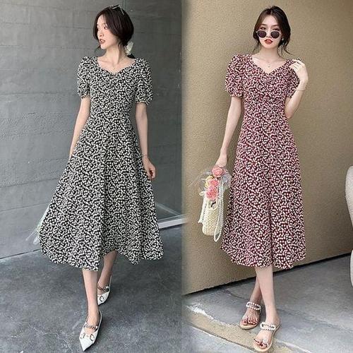 [드레스날다]좋아해뒷트임 스퀘어 퍼프 롱 원피스(mops1534)