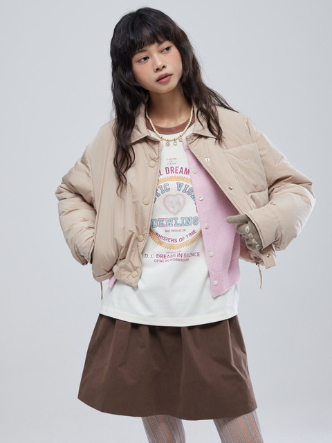 [듀엘] 레터링 프린트 패딩 크롭 점퍼 BE_D254MSJ130