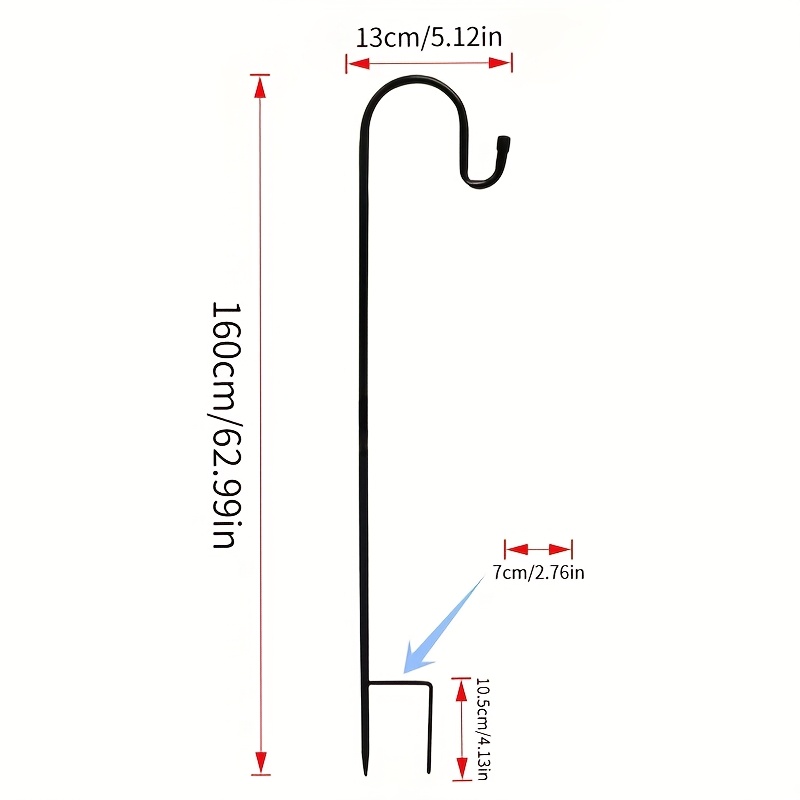 TEMU 헤비듀티 철제 셰퍼드 훅 잔디 폴 - 싱글/더블 훅 포함, 높이 조절 가능 (32인치/48인치/63인치) 야외 정원 스테이크, 쉬운 조립, 넓은 베이스 지면 , 정원 장식용 - 마당에 적합한 이상적인 선물