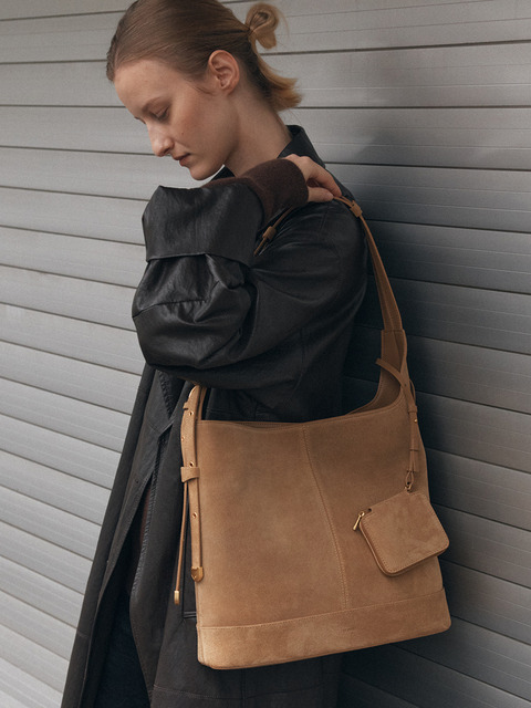 벤쿠쿠 스웨이드 가죽 호보 숄더백